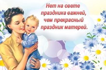 Нет, наверное, ни одной страны, где бы не отмечался День матери. В России День матери стали отмечать сравнительно недавно. Установленный Указом Президента Российской Федерации Б.Н. Ельцина № 120 «О Дне матери» от 30 января 1998 года, он празднуется в последнее воскресенье ноября, воздавая должное материнскому труду и их бескорыстной жертве ради блага своих детей.