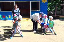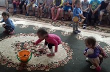 14 августа педагоги Якупова Л.Р. и Новикова М.В. провели для воспитанников спортивное развлечение "Игры в лесу". Дошкольники по дороге на лесную полянку преодолели "полосу препятствий": "тропинка" из шнура, скамейка ("поваленное дерево"), дуги для подлезания ("дерево наклонилось"). На "лесной поляне" поиграли в игры: "Собери букет", "Четыре стихии","Кто больше шишек соберёт".