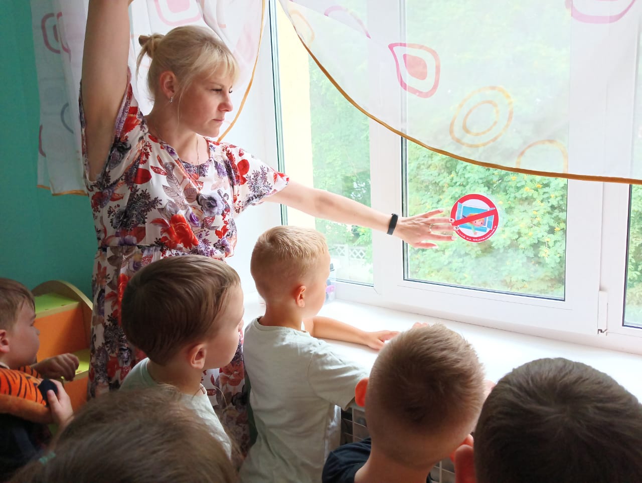 Ата – аналарга, законлы вәкилләргә тәрәзәдән төшү нәтиҗәсендә килеп чыккан фаҗигаләр турында мәгълүмат бирү максаты белән ачык тәрәзәләргә керү мөмкинлеге, беркетелмәгән мәскит челтәрләре, җәйге чорда кечкенә балаларның күзәтүчәнсезлеге турында мәгълүмати буклетлар, тематик листовкалар һәм брошюралар урнаштырылды, балалар һәм ата-аналар белән «Бүлмәдә Бала-тәрәзәне яп», «Куркынычсыз тәрәзә ясагыз», «Ата-аналар өчен төп кагыйдәләр», «Баланы тәрәзәдән төшүдән ничек саклау» дигән тематик әңгәмәләр үткәрелде. Чаралар мәктәпкәчә белем бирү учреждениесенең барлык яшь төркемнәрендә үткәрелде. Кече яшьтәге балалар белән педагоглар уен формасында дәресләр, әңгәмәләр үткәрделәр, өлкән яшьтәге балалар бу тема буенча презентацияләр карадылар һәм рәсемнәр күргәзмәсе ясадылар.