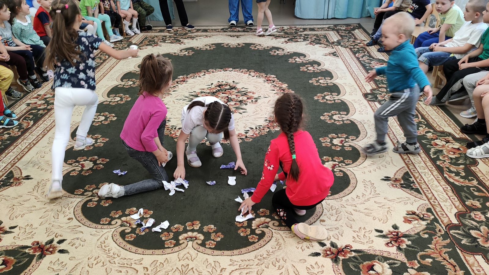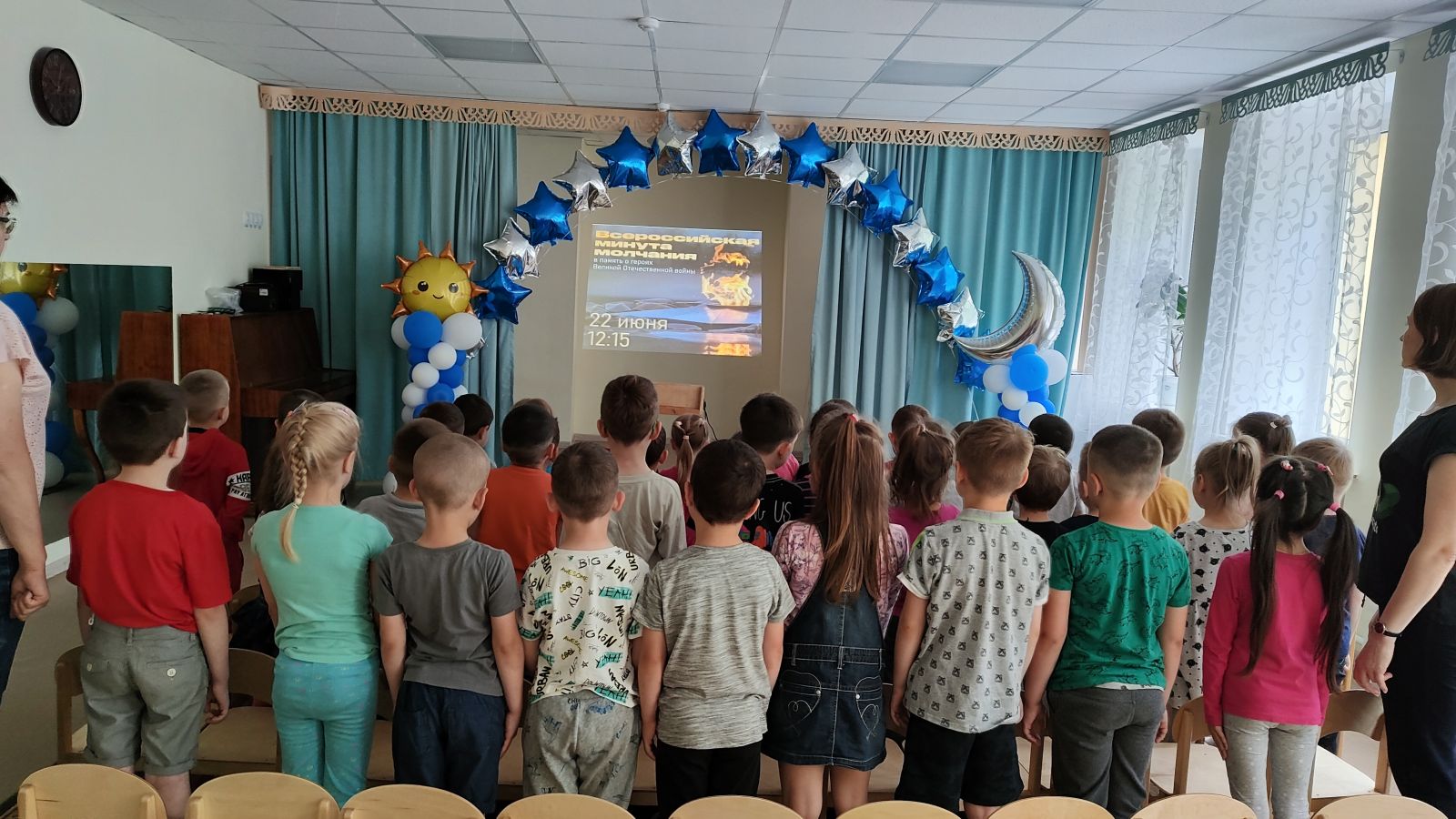 Мәскәү вакыты белән 12: 15 сәгатьтә бөтен Россиядә бер үк вакытта Бөек Ватан сугышы геройлары истәлегенә «Бер минут тынлык» үткәрелә – кешеләр башларын ияләр һәм иң канкойгыч сугыш кичергән туганнарын, якыннарын искә алалар. Безнең балалар бакчасы да әлеге акциядә катнашты.