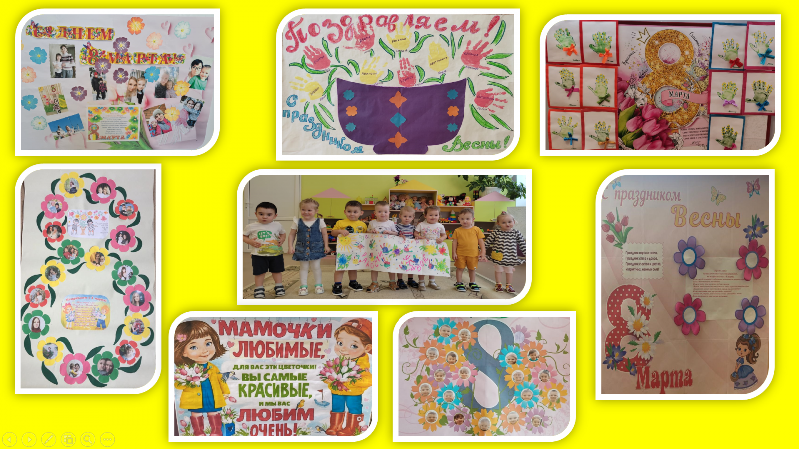 Международный женский день - это как раз тот самый праздник, когда мы можем поблагодарить своих мам и бабушек за все хорошее, что они сделали для нас, выразив свою любовь и заботу. Этот день согрет лучами солнца, женскими улыбками и украшен россыпью цветов. В преддверии праздника в нашем детском саду прошли мероприятия, посвященные женскому Дню 8 марта. Поздравления, песни, танцы и стихи звучали для Вас, наши дорогие женщины!