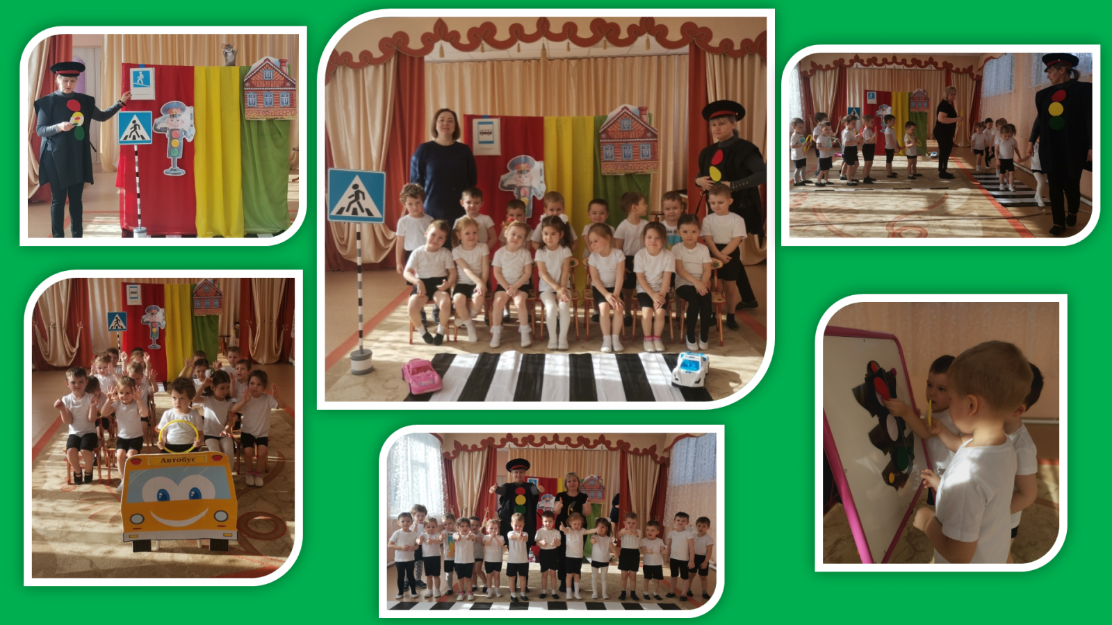 17 марта для воспитанников младшего дошкольного возраста инструктор по физической культуре Голунова Н.В. и музыкальный руководитель Романова Е.А. провели спортивно - театрализованное представление по ПДД «Дорожные приключения». Уличное движение делает дороги всё более опасными для детей. Очень важно в дошкольном возрасте формировать навыки выполнения правил поведения на улице, дороге. Мероприятие проводилось с целью закрепления правил дорожного движения на дороге. К детям в гости приходили лесные зверюшки, которые ничего не знали о правилах поведения на дороге. Зверюшкам помог Светофор вместе с ребятами. Дети рассказывали стихи про цвета светофора, играли в игры по правилам дорожного движения. На празднике был макет светофора, детям нужно было выполнить все правильные задания на каждый цвет. Сколько сигналов у светофора? Зачем нужен светофор? Проводились эстафеты. Дети справились со всеми заданиями, им было очень интересно!