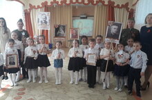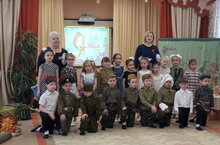 Более семидесяти лет прошло с тех пор, как закончилась Великая Отечественная. Очевидцев войны, тех, кто сражался за нашу Родину, с каждым годом становится всё меньше и меньше. Но люди живы, пока о них не угасла память. Юные наследники Великой Победы должны знать о подвиге своих прадедов. 5 мая воспитанники подготовительной к школе группы №1 с воспитателем Кондратьевой Г.М. и музыкальным руководителем Романовой Е.А. показали театрализованное представление «Фронтовик», посвященное Дню Победы. Единым строем, с цветами и красными флажками в руках, чеканя шаг, маршировали подтянутые серьёзные мальчишки в форме и стройные симпатичные девчонки в платьях военных лет. В данных образах ребята мало походили на беззаботных малышей, перед внимательными взорами зрителей предстали настоящие солдаты и смелые боевые подруги. Выступающим было не до улыбок. Театральная постановка на серьёзную тему. Здесь провожали на войну сыновей, отцов. Бойцы с фронта присылали исписанные треугольные письма. Тем, самым искренним человеческим чувствам, что не погибали во время войны, а наоборот ещё крепче бились в сердцах людей, посвящали стихи, песни и танцы, которые исполнили наши ребята. Дети не только принимали участие в музыкальных, танцевальных и театрализованных номерах, но и смогли узнать много нового о тех страшных событиях времён Великой Отечественной. Ребята внимательно слушали сообщение Левитана, с интересом смотрели кинофрагменты. Оживали картины из жизни тех, кто бился прямо на передовой, и тех, кто трудился ради победы в глубоком тылу. На мероприятие звучали и другие вокальные композиции военных лет. Выражаем воспитанникам подготовительной к школе группы №1, воспитателю Кондратьевой Г.М., музыкальному руководителю Романовой Е.А., родителям огромную благодарность за проводимую работу по патриотическому воспитанию их детей!