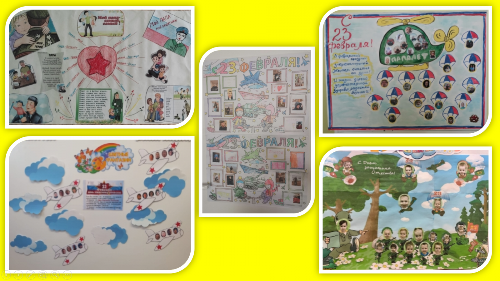 В нашем детском саду по традиции на 23 февраля воспитатели с воспитанниками всех групп готовят стенгазеты. В процессе работы дети вспомнили названия военных профессий, рисовали военную технику, раскрашивали, вырезывали и составляли совместно композицию. Столько было получено удовольствия и эмоций от совместного творчества. Мы надеемся, что наше совместное творчество стал прекрасным подарком для наших пап и дедушек!