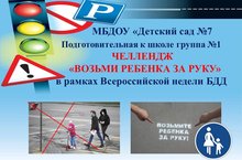 В рамках недели безопасного движения организованный ГУОВДД МВД России совместно с газетой «Добрая Дорога Детства» наш детский сад принял участие в челлендже по профилактике дорожно – транспортного травматизма с целью акцентирования внимания взрослых на необходимости правильно держать ребенка за руку при движении вдоль проезжей части и переходе дороги. Взрослые, передвигаясь с ребенком, зачастую держат его небрежно за кисть руки либо позволяют ребенку самому держаться за руку родителя. Это ненадежно, так как ребенок легко может высвободить свою руку или отпустить руку взрослого. Поэтому взрослым необходимо правильно и крепко держать детей за руку, чтобы контролировать их действия (например, не позволить вырваться и выбежать на проезжую часть дороги, подстраховать, если оступится или упадет).