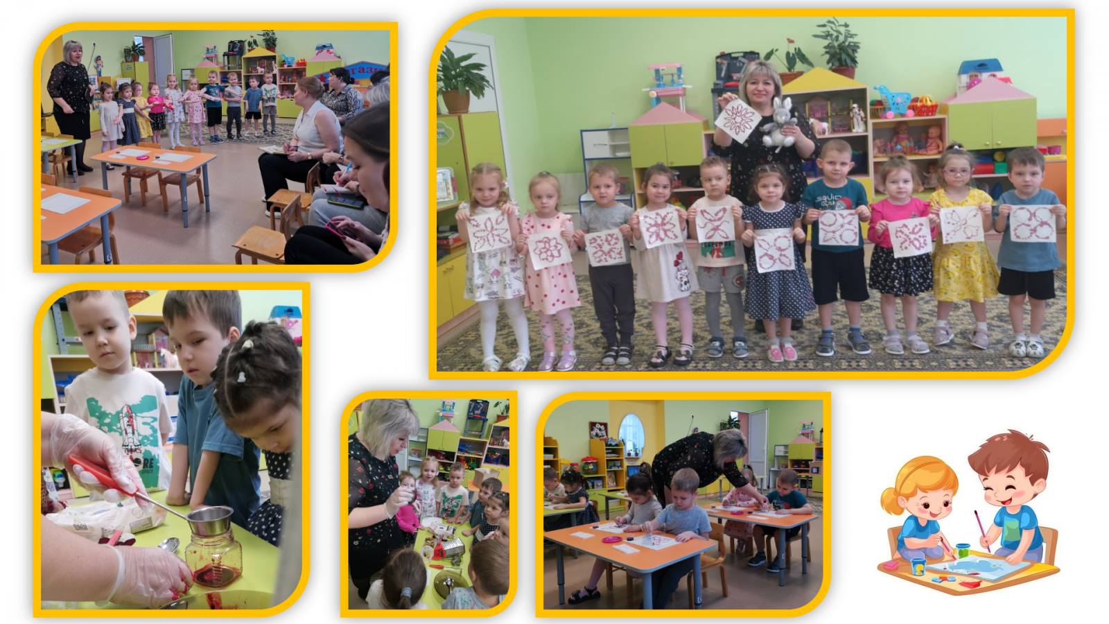 25 января воспитатель первой квалификационной категории Герасимова Наталья Валерьевна со своими воспитанниками средней группы для педагогов нашего детского сада показала открытое занятие по художественно-эстетическому развитию, рисование «Необычные краски». Цель занятия: развитие творческих и познавательным способностей детей. В ходе занятия дети отгадывали загадки, получили экспериментальным способом натуральную растительную краску из свёклы, а далее с помощью этой краски украшали платочки для зайчат нетрадиционным способом - ватными палочками, во время физминутки потанцевали вместе зайчиком. Занятие получилось интересным, увлекательным и продуктивным. Дети успешно справились со всеми заданиями. Коллеги дали высокую оценку занятию.