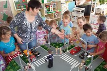 1.09.16 года дети подготовительной группы №2, воспитатель Ситдикова Р.Ш., изучали на макете дорожного движения и на плане - схеме района детского сада №7 безопасный маршрут в детский сад. Потом ребята в группе нарисовали рисунки на тему «Безопасная дорога в детский сад».