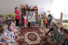 29 августа дети подготовительной группы №1 посетили 2 младшую группу с целью знакомства малышей с правилами дорожного движения. Дети поделились своими знаниями и показали малышам картинки по правилам дорожного движения.