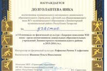 Долголптева Ника приняла активное участие в I Олимпиаде по физической культуре "Здоровое поколение XXI века" 1 декабря 2015 г.