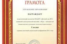 I место в муниципальном конкурсе рисунков и аппликаций по противопожарной тематике 2011г.
