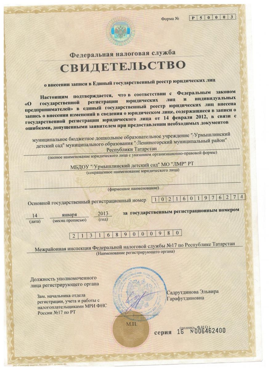 Короткое название: МБДОУ"Урмышлинский детский сад"мо "ЛМР"РТ