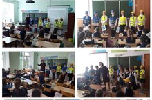 В 7 б классе прошёл урок ОБЖ на тему "Как вести себя при ДТП".Учащиеся закрепили свои знания об основных правилах пешеходов и водителей,вспомнили номера телефонов служб спасения,как оказывать первую помощь пострадавшим и сообщать правильно информацию о ДТП