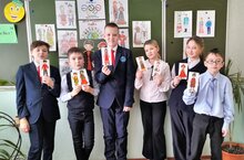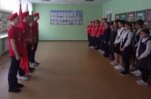 На мероприятии присутствовали учащиеся 6 классов. Мальчики 8Б класса в составе Знаменной группы внесли Государственный флаг Российской Федерации, Республики Татарстан и Знамя «ЮНАРМИИ»
