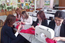 Учитель технологии Султанова Х.Х. с девочками 8б шьют опознавательные повязки для бойцов в зоне специальной военной операции. Наши пожелания — крепкого здоровья, удачи и скорейшего возвращения домой!!!