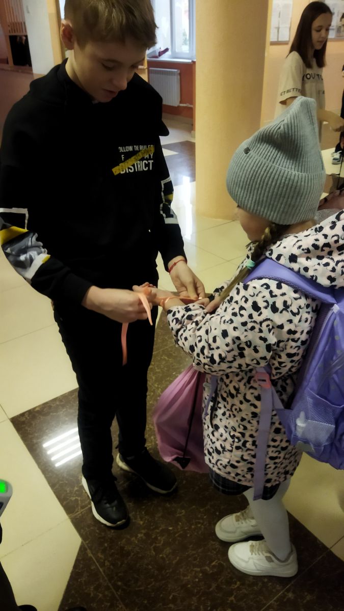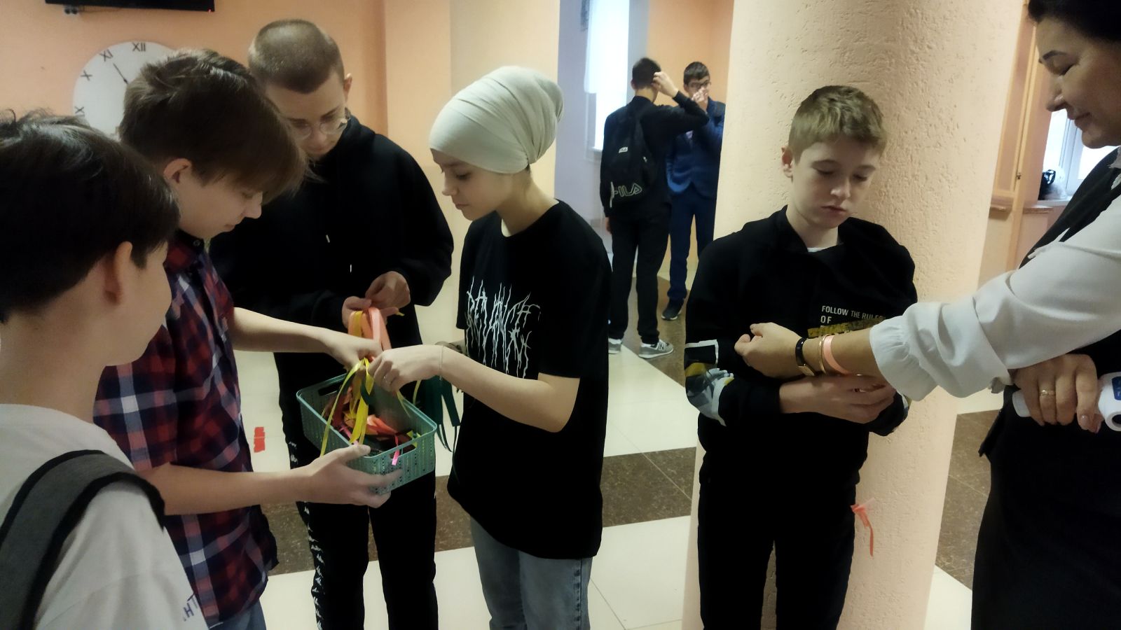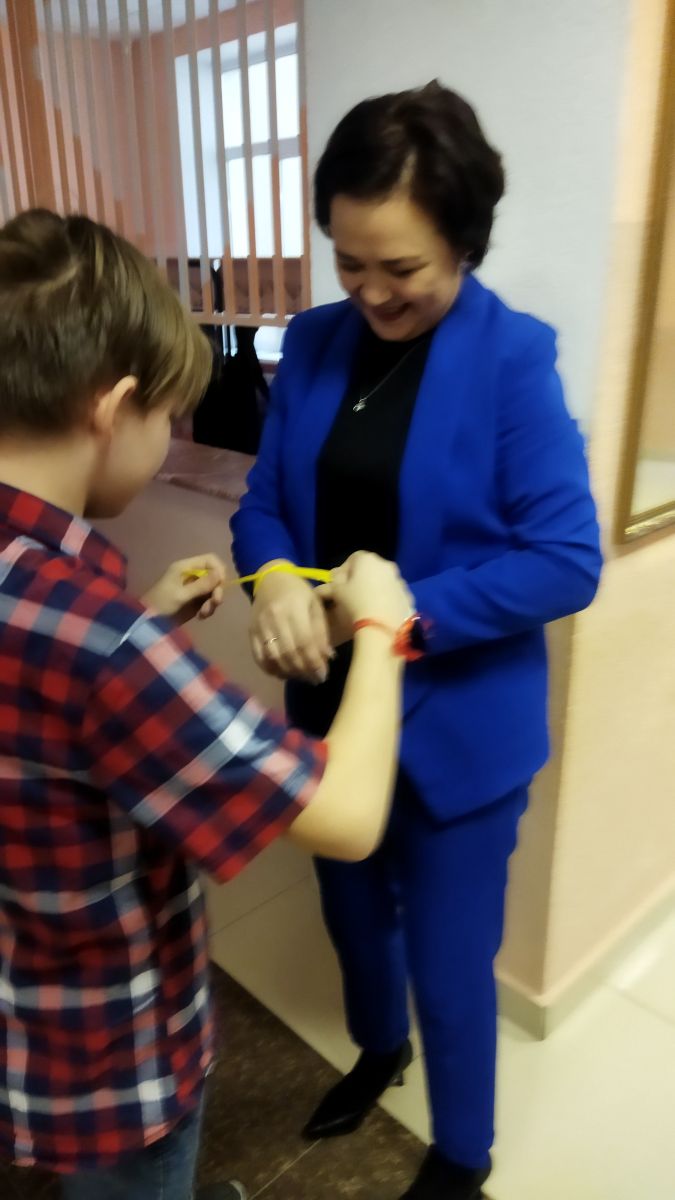 которой дети дарили друг другу и учителям яркие ленточки. Девочки выбирали зеленый и желтый цвет, а мальчики красный. В акции принимали