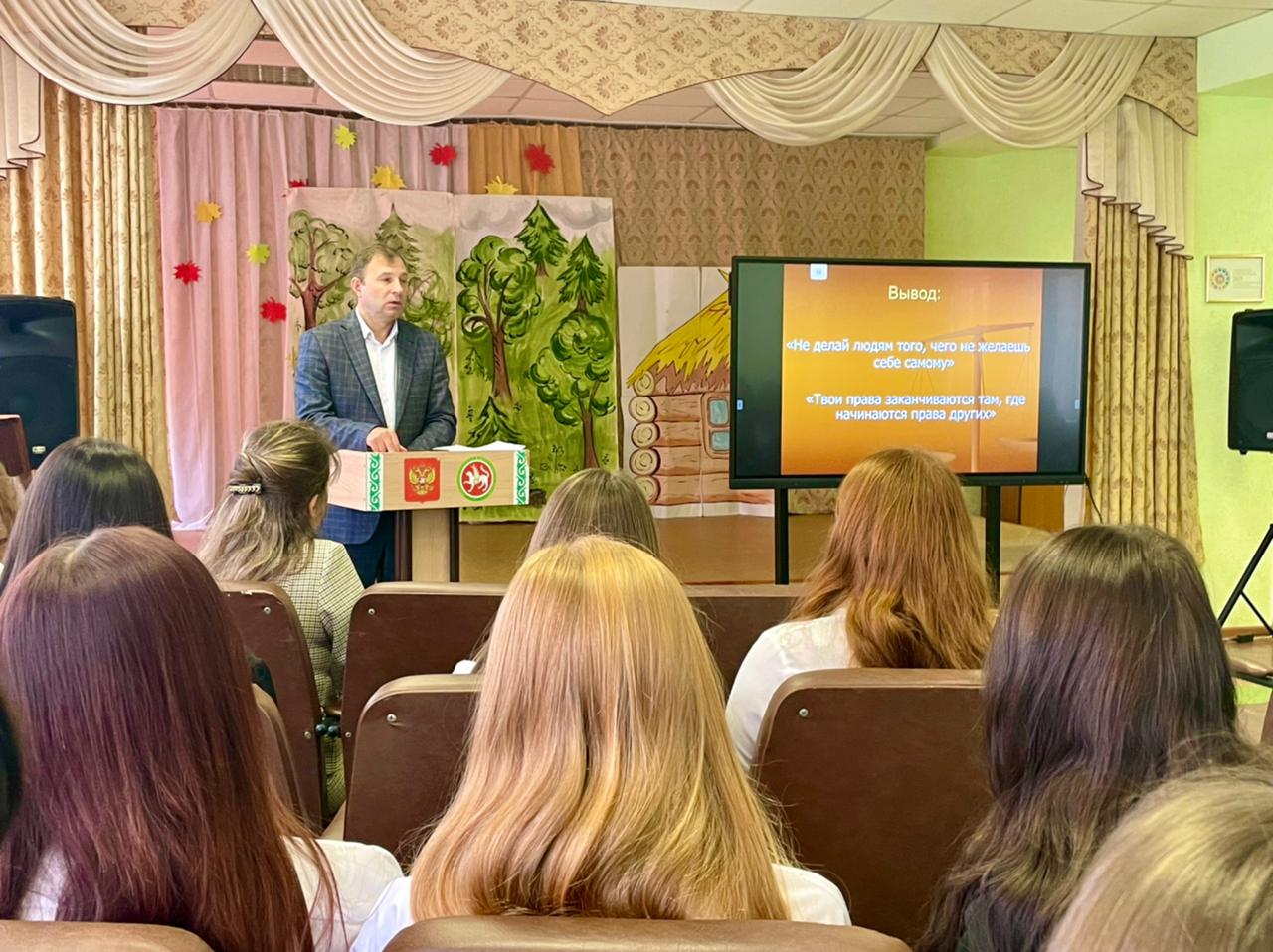 познакомила с историей законотворческого процесса в Российской Федерации, правами и обязанностями граждан РФ. Инспектор ПДН Ефремова Лилия Маратовна рассказала о процедуре привлечения к ответственности за противоправное поведение.