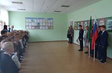 исполнением гимнов. На линейке присутствовали ученики 1-ых классов. Право выноса флагов было предоставлено участником Юнармейского