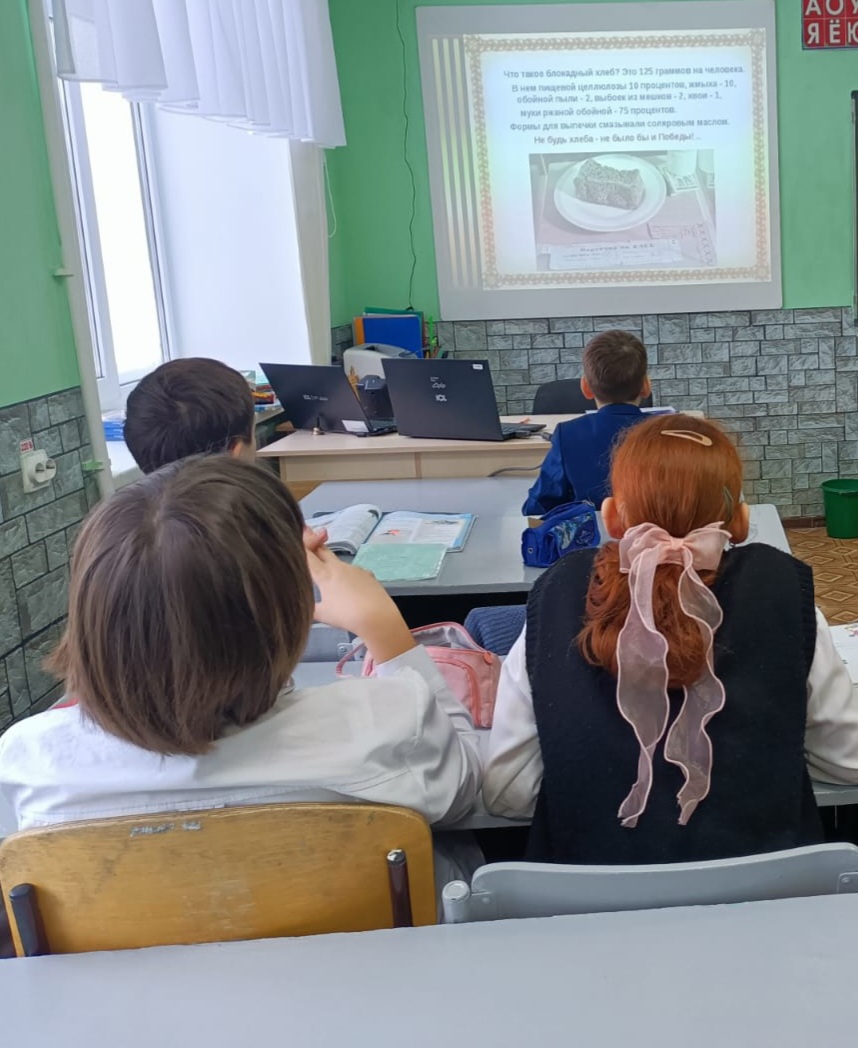 В этом году 27 января исполнилось 80 лет со дня полного освобождения Ленинграда от фашистской блокады. В этот день ежегодно не только один из самых красивых наших городов, но и вся страна вспоминает, как Ленинград мужественно выстоял в годы Великой Отечественной войны и не сдался врагу. Вспоминали про героический подвиг ленинградцев-блокадников в этот день и учащиеся 6 «А» класса. На уроке памяти ребята узнали много документальных фактов и ужасающих цифр статистики человеческих жертв войны, в том числе детей. Час истории прошёл в форме непринуждённой поучительной беседы, и отрадно, что современные школьники многое рассказали о той страшной войне, о многих важных в жизни вещах задумались, например, о ценности хлеба в блокадном Ленинграде и в наши дни. Просмотрели видеоролики о детях тех военных лет, обсудили подвиг ленинградцев - и взрослых, и ровесников сегодняшних наших учеников. Дети не только продолжали учиться в нечеловеческих условиях, несмотря на голод, болезни, лютый мороз и постоянные бомбёжки, но и помогали, как и чем могли, всем нуждающимся: работали в госпиталях, обходили квартиры, ослабевшим от голода ленинградцам выкупали хлеб по карточкам, приносили дрова, воду с Невы, а с 12 лет уже вставали у станка, выпускали боеприпасы и оружие для фронта, рыли окопы… Надеемся, что этот патриотический урок останется в памяти и сердцах наших ребят, потому что «пока мы помним прошлое, у нас есть будущее».
