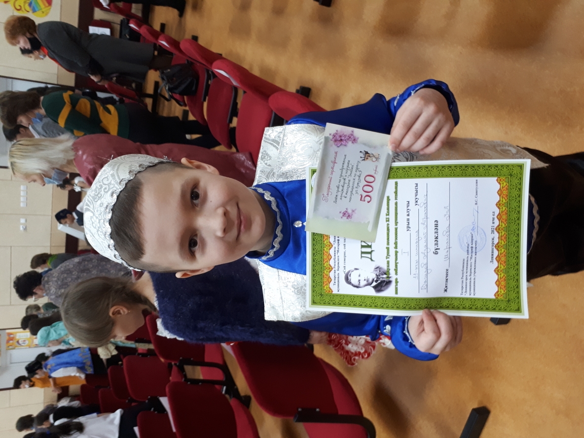 Шигырь бәйгесендә уңышлы чыгыш ясап, 6А класс укучысы Хөсаенова Азалия 3 урынга, 1А класс укучысы Исламова Әминә 2 урынга, 2А класс укучысы Вагыйзов Азамат 1 урынга лаек булдылар.1 урын алучы укучыбыз Вагыйзов Азамат Казанда район данын яклаячак.