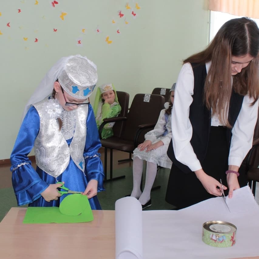 Татарстанда туган телләр һәм халыклар дуслыгы елы уңаеннан “Лениногорск шәһәренең 11 нче гимназиясе”ндә "Ак калфак" хатын -кызлар оешмасы әгъзалары белән очрашу булды. Очрашуга 10 - 11нче сыйныф кызлары чакырылды. Алар белән татар хатын-кызларының баш киеме - калфак тегәргә өйрәндек. Борынгы заманнарда нинди калфак кигәннәр, нинди бәйрәмнәрдә кигәннәр? Калфаклар тарихы, аларның төрләре турында да сөйләде Сәрия Ашраповна. Ә инде калфак тегү серләренә Тәслимә Һади кызы өйрәтте. Зилә Марат кызы укучыларыбызның татар халык мәкальләрен ни дәрәҗәдә белүләрен тикшерде. Соңыннан җиңүчегә ак калфак бүләк ителде. Аңа 10 сыйныф укучысы Фазлыева Ралина лаек булды. Кичә "Сәйлән" вокал ансамбле башкаруында җырлар белән үрелеп барды.