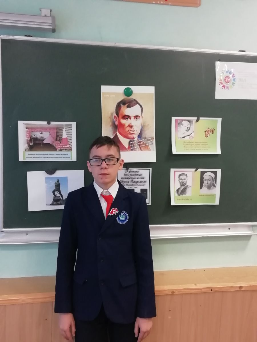 17 февраля в 8Б классе прошёл классный час посвящённый 115-летию со дня рождения великого татарского поэта и Героя Советского Союза Мусы Джалиля. Учащиеся вспомнили об учебе, творчестве, суровых фронтовых буднях поэта, о страшном времени, проведенном в фашистских застенках концлагерей, в которых единственным оружием Мусы Джалиля были его стихи. «Я не боюсь смерти. Это не пустая фраза. Когда мы говорим, что мы смерть презираем, это на самом деле так... Есть жизнь после смерти... в сознании, памяти народа. Если я при жизни делал что-то важное, бессмертное, то этим я заслужил эту другую жизнь - «жизнь после смерти»... Цель-то жизни в этом и заключается: жить так, чтобы и после смерти не умирать». В этих словах великого поэта и определение, и объяснение человеческого и творческого подвига, свершённого поэтом, чьё имя стало символом стойкости, героизма, беззаветной преданности Родине, верности гражданскому и писательскому долгу. Бессмертный подвиг этого великого человека мы будем помнить всегда!
