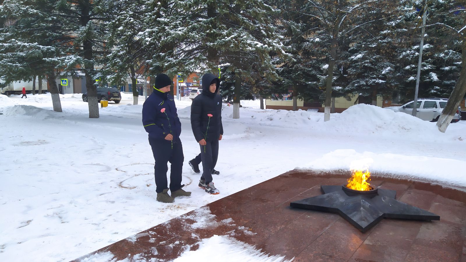 Приурочив к этой памятной дате, учащиеся Гимназии возложили цветы на вечный огонь и Герою. России Дамиру Исламову.