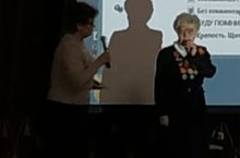 Учащиеся 7б класса посетили Дом культуры. Где была организована встреча блокадницей г.Ленинграда Вукалевой В.Б. Она поделилась своими детскими воспоминаниями о прожитых вопреки, всему днях и ночах Ленинградской блокады: «Во время блокады в городе не было света, не работала канализация, не было воды. За водой ходили на Неву кто с чем - кто с бидончиком, кто с кастрюлями, кто с ведром. Отопления в домах тоже не было - отапливали жилье и грелись с помощью буржуек. Их топили кто чем- кто мебелью, кто книгами. Хлеб выдавали всем по карточкам по своей норме. Ребенку было положено 125 грамм. Как хорошо, что война закончилась, и мы живем в мирное время!..».