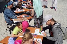 15.06. Возле художественной школы педагоги из художественной школы показали мастер класс на тему "Винтажная брошка". Дети своими руками сделали брошки из ткани. И с удовольствием унесли собой.