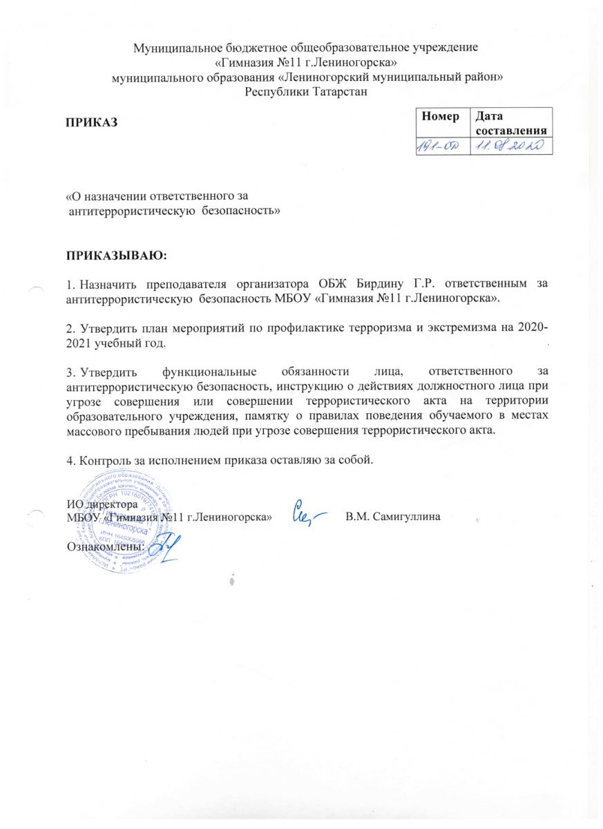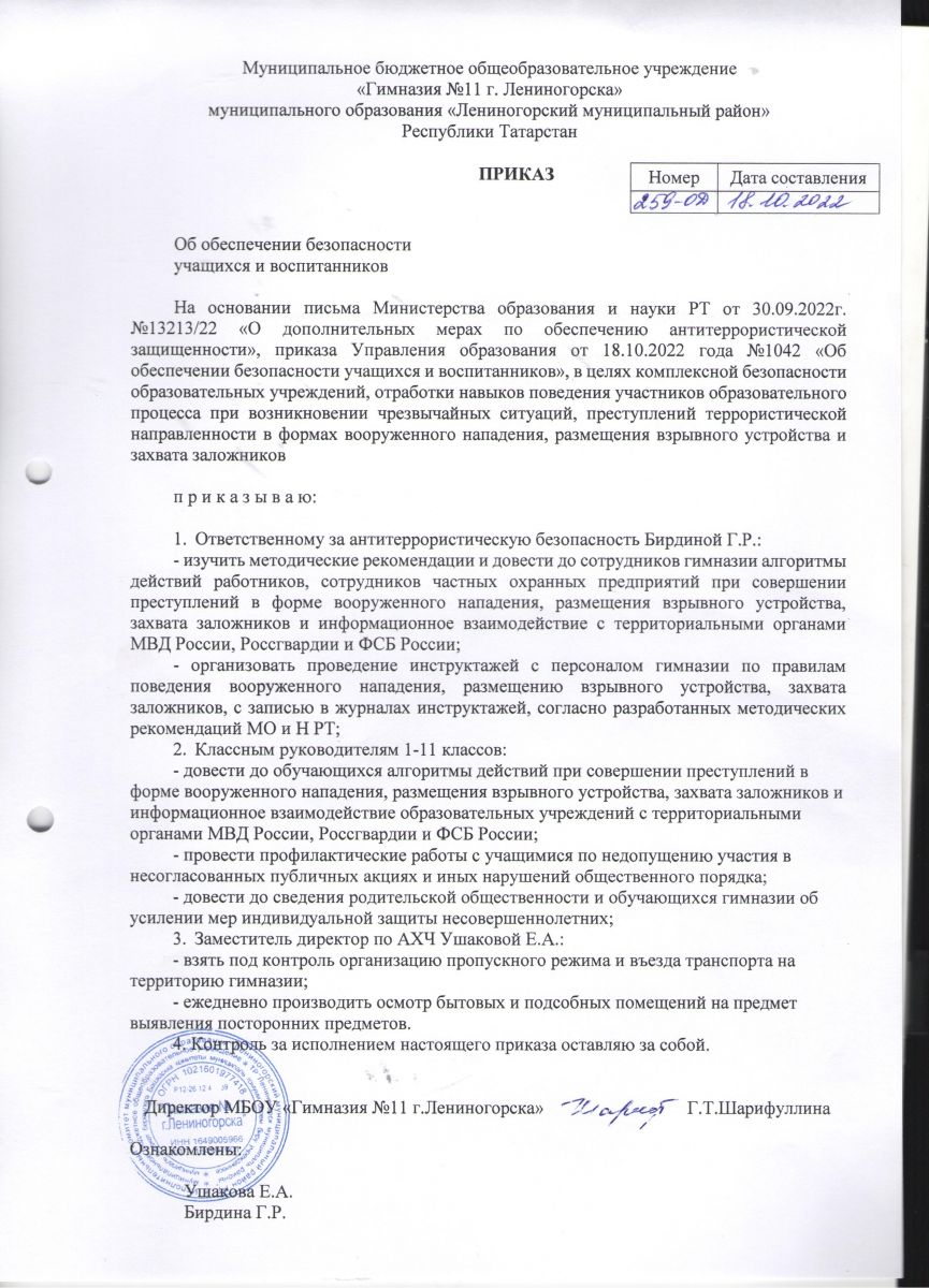 Приказ "Об обеспечении безопасности учащихся и воспитанников"