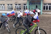 22 августа. Велопробег учащихся нашей школы с флагами Российской федерации.