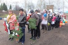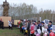 С фотографиями участников ВОВ, деревни Ивановка, учащиеся школы прошли маршем до памятника Неизвестному солдату.