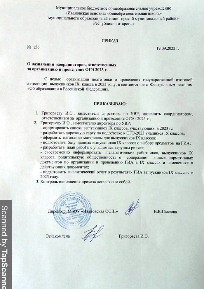 Приказ о назначении ответственного за организацию и проведения ОГЭ 2023 года