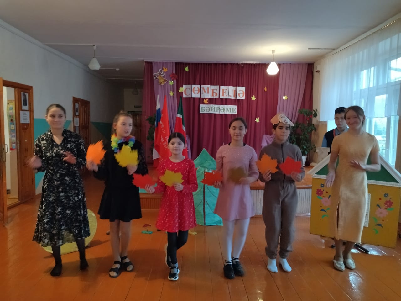 Опубликовано: 20.10.202313 октября, в школе прошёл календарно-обрядовый праздник, посвященный уборке урожая СӨМБЕЛӘ. Учащиеся школы инсценировали сказку, на татарском языке, «Репка», пели песни, участвовали в конкурсах.