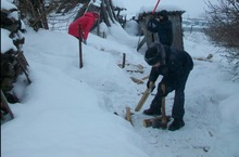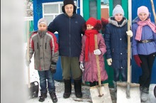 Тимуровцы колят дрова ветерану труда , которая много лет работала в школе технич.работником . 06.02.2014