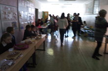 Сегодня в школе была организована традиционная ярмарка, посвященная Дню инвалидов. Для продажи были выставлены вязаные носки, косметические товары, выпечка, караваи. Школьный коридор напоминал настоящий базар, который посетили и жители села. Музыка поднимала всем настроение. Часть вырученных денег дети положили в общую кассу для покупки подарков инвалидам села.