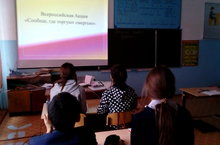 8-9 классах в рамках Всероссийской антинаркотической акции «Сообщи, где торгуют смертью», был проведен классный час (о вреде табака, алкоголя, наркотиков). Учащиеся узнали о негативных последствиях употребления табака, алкоголя и наркотиков и их влиянии на здоровье. Мероприятие прошло в форме откровенного разговора с элементами игры, а также учащиеся ознакомились с небольшим теоретическим материалом, в котором были представлены самые необходимые сведения о вреде тех или иных веществ.