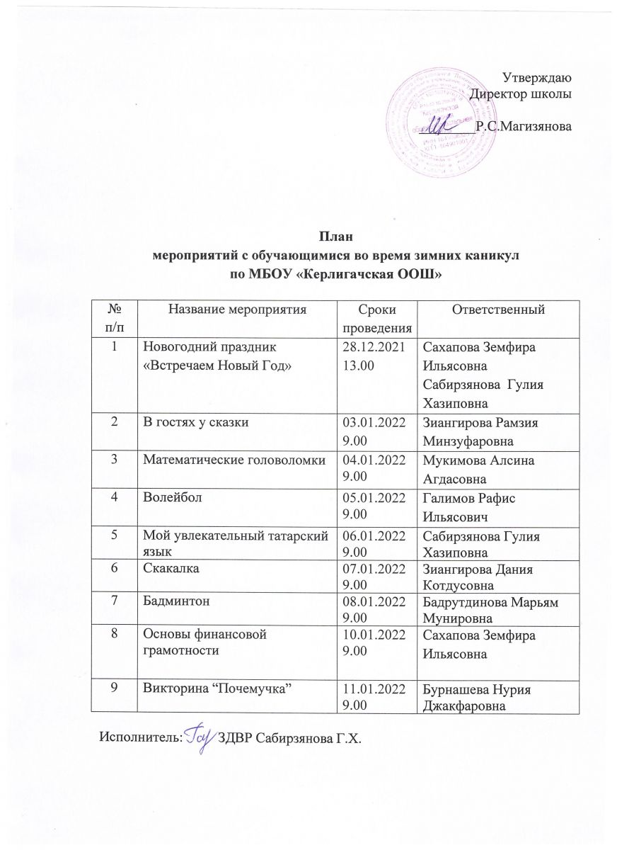 План мероприятий с обучающимися во время зимних каникул 24.12.2021