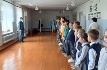 Сегодня в школе сотрудники МЧС провели тренировочную эвакуацию. Гафиятуллин Р.Р. провел беседу с детьми о пожарной безопасности.