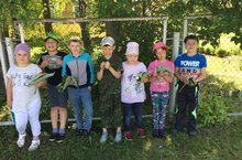 Учащиеся пришкольного лагеря туда и отдыха работали на пришкольном участке.