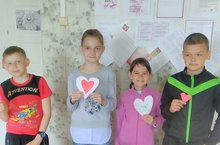 А дальше детей ждала развлекательная программа «День всех влюбленных». Участники выбирают половинки сердечек и воссоединяются друг с другом. Эти пары играют вместе от начала конкурсов и до конца, не заменяя партнера.