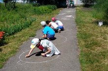 Мәктәп яны лагеренда рәсемнәр ясау.