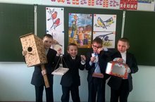 В школе был проведен конкурс по изготовлению кормушек для птиц. Кормушки - большое подспорье для птиц. Жирные подсолнечные семечки, хлебные крошки, а особенно сало (не соленое и не копченое) зимой спасают многих пернатых. С помощью родителей и самостоятельно ребятами изготовлены разные кормушки, начиная от простеньких «птичьих столиков» и заканчивая «сказочными дворцам» с окнами и крышей. Учащимися 1 класса изготовлено множество кормушек, часть из которых будут размещены на территории школы, часть в лесу, остальные ребята будут развешивать возле своих домов.