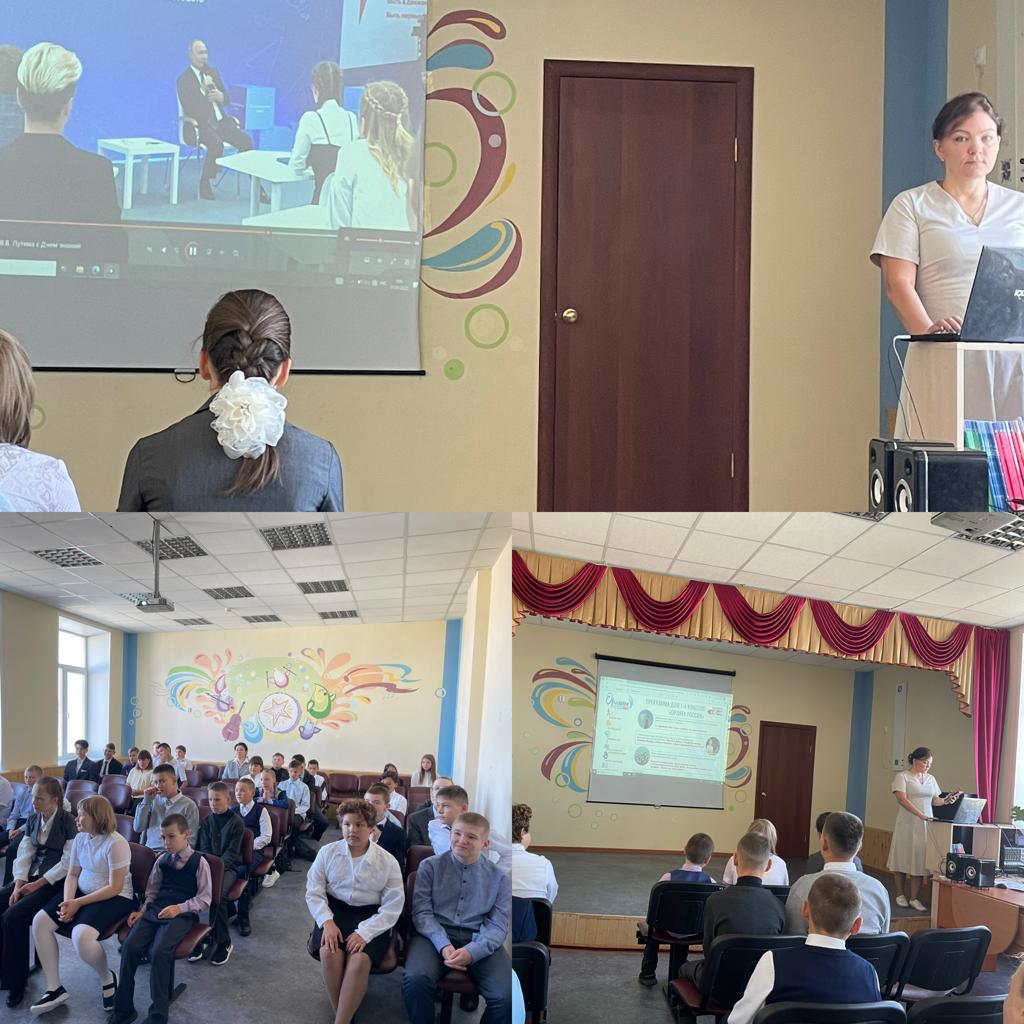 В рамках урока "Разговор о важном", классный руководитель Перовская К.Р. обсудила с учащимся 5-9 классов значимость обучения в школе, просмотрели видеоролики выступления президента В.В.Путина, отвечали на вопросы викторины.
