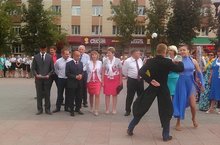 Участники хореографического кружка "Солнышко" нашей школы (рук-ль Азова Н.М.) выступили сегодня на центральной городской площади. Их выступление высоко оценил министр образования и науки Татарстана Э.Н.Фаттахов, который прибыл на августовскую конференцию в наш город.