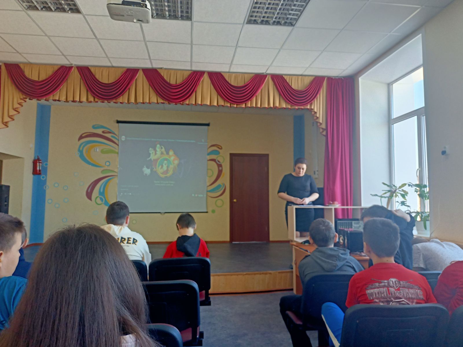 Занятие сопровождалось демонстрацией видеоролика о достижениях Советского Союза и России в аэрокосмической отрасли; об истории космонавтики и о первом полёте человека в космос, о современных космонавтах.