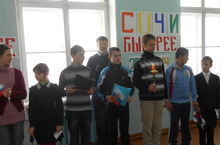 В нашей школе была проведена стартовая линейка, посвященная открытию XXII Зиминих Олимпийских игр "Сочи-2014". Лучший спортсмен школы был удостоен пронести эстафету Олимпийского огня. Девиз малой олимпиады "Быстрее! Выше! Сильнее!"