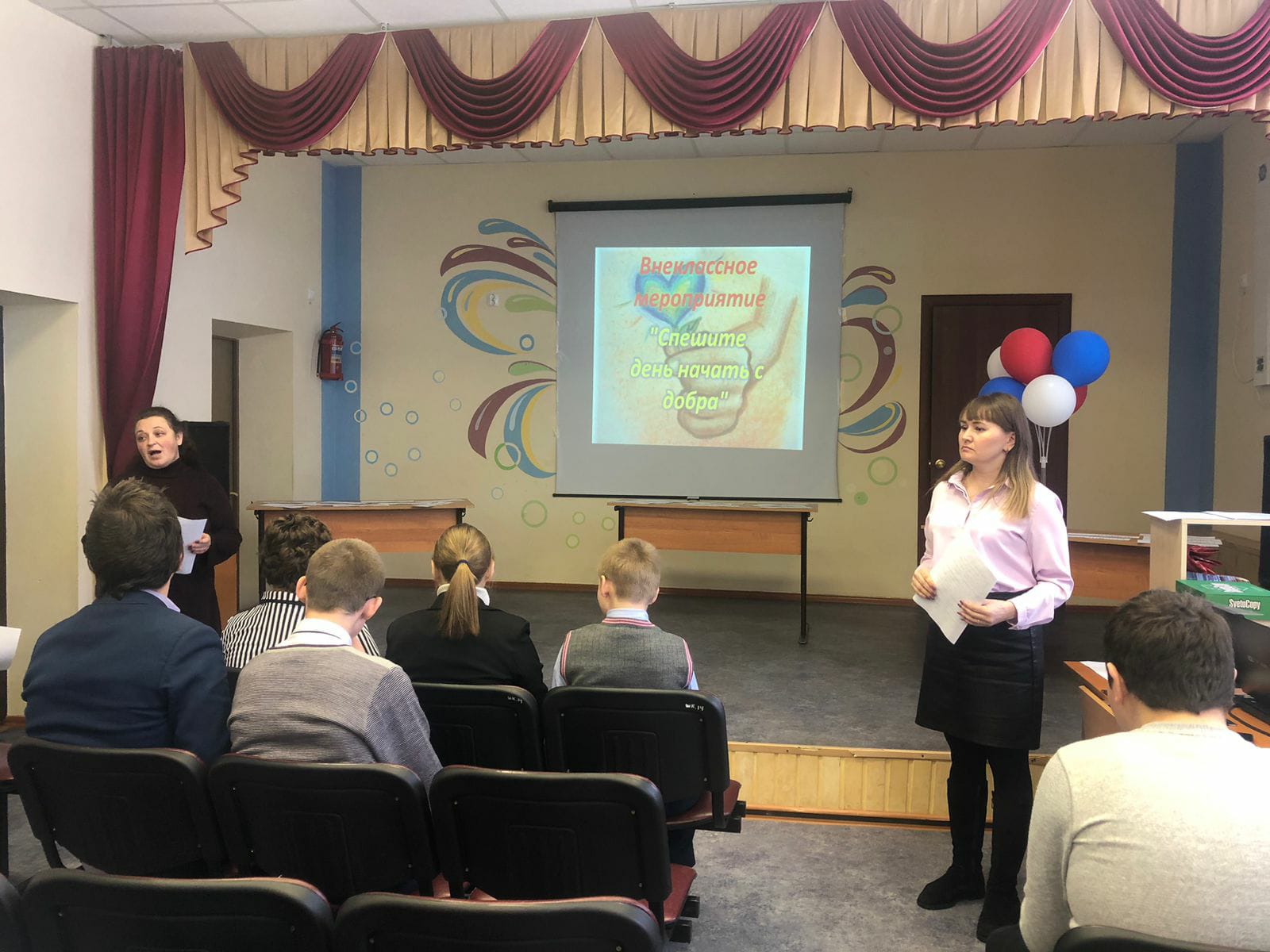 В рамках декады инвалидов учителями надомного обучения Кошкиной Н.А. и Загертдиновой Г.Г. было проведено внеклассное мероприятие по теме: "Спешите день начать с добра", среди 6-9 классов. Дети отгадывали загадки, пели песни о доброте, танцевали, читали стихи, находили антонимы, говорили друг другу ласковые слова, комплименты. В завершении, все ученики остались довольны, в хорошем настроении. Ребята получили мандарин, как символ доброты этого мероприятия.