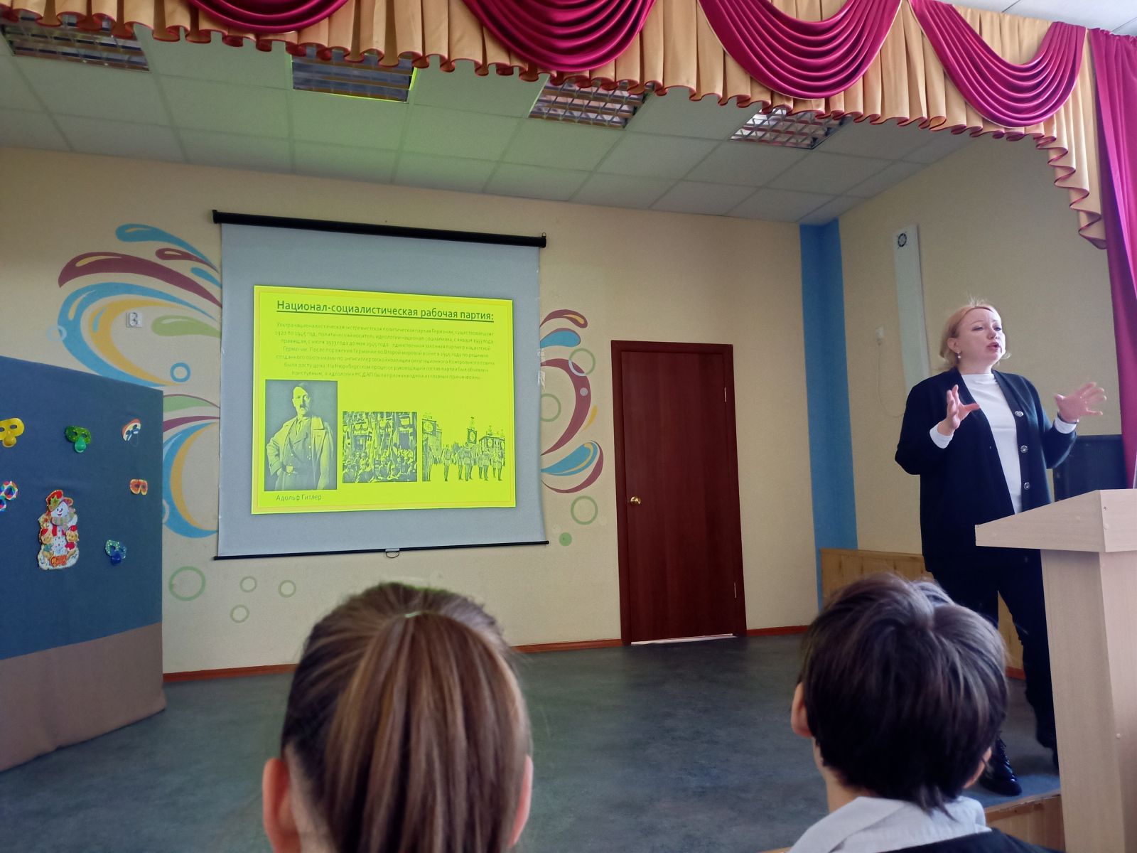 В рамках дня снятия блокады Ленинграда, администрация центра "Форпост" сегодня в нашей школе провела лекцию сопровождением презентации и показом фильмов.