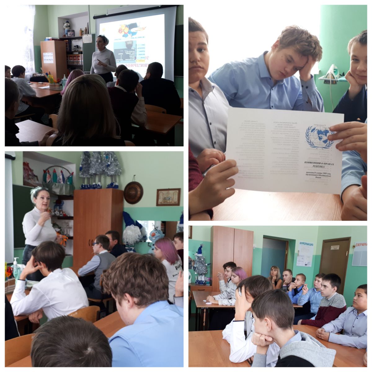 В 7б и 8а классах состоялось внеклассное мероприятие на тему «Конвенция о правах ребенка. Что это такое и знаю ли я её?». Детям было дано представление о международных документах, касающихся защиты прав детей, представление понятий «декларация» и «конвенция», их функций.