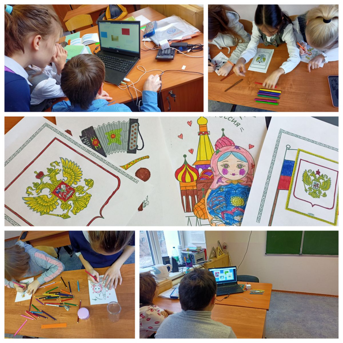 В конце урока ребята смогли закрепить знания, раскрашивая раскраски с символами России.